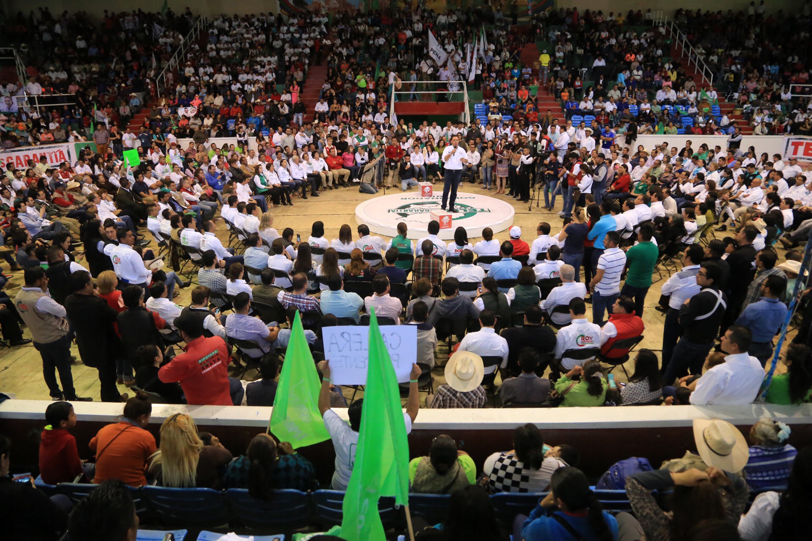 "Yo no quiero estar en una placa de un edificio, quiero que la gente incremente su nivel de vida, que tenga agua, drenaje, salud. Todo lo voy a hacer con honestidad, transparencia y rendición de cuentas. No se puede hablar de eso, si no se da el ejemplo. El gobierno de Tello va a ser el más honesto en la historia de Zacatecas, se los garantizo", remató contundente ante miles de militantes del partido Verde reunidos en el gimnasio Marcelino González.