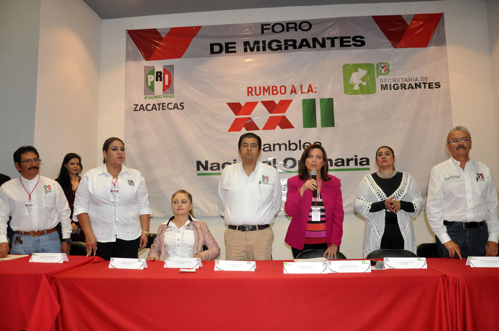 Con la participación de priistas de los estados de Zacatecas, Durango, San Luis Potosí y Aguascalientes se instalaron cuatro mesas de trabajo con los temas representación migrante en el poder ejecutivo y legislativo de los estados y municipios, análisis de las políticas y estrategias públicas orientadas a la atención y apoyo a la comunidad migrante, fortalecimiento presupuestal dirigido a programas y estrategias de atención al fenómeno social migrante y Un PRI aliado de los migrantes.